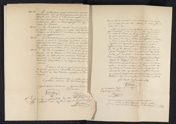 Curator: What strikes me immediately about this reproduction of a letter by Charles IX of France is its fragility. The thin paper, the faded ink—it all speaks to the passage of time and the delicate nature of historical documents. Editor: Indeed, there is a ghostly quality evoked through these materials. Consider that this letter originates from 1567, a tumultuous period marked by the French Wars of Religion. Charles IX was king during the St. Bartholomew's Day Massacre, an event that has had repercussions for the shaping of social identities in France ever since. Curator: The handwriting itself is fascinating. That calligraphic style was so integral to projecting power and authority. The very act of signing his name becomes a potent symbol, almost like a visual brand representing the monarchy. Editor: The letter opens "Charles by the grace of God, King of France…" which immediately situates it in that symbolic framework. The imagery here recalls medieval notions of divine right. Can we extract from it a deeper, more subliminal psychology of power? It has to also be considered against the realities of the massacre of Huguenots that he enabled as a social leader, what kind of psychological dissonance can the viewer feel upon reading this? Curator: It is a complicated perspective shift! We see what's written as well as being hyper-aware of its function. Are there recognizable symbols that we are supposed to be reminded of as we process the lettering? The image itself feels very private and delicate as though someone created this so as not to have the letter fully viewed at first glance. Editor: There’s a particularity in the shapes of letters which are so beautiful that I wish they hadn’t become associated with such violence and chaos. But the original intention may be that they project power. Curator: Viewing historical artifacts can certainly be a double-edged sword. The beautiful can also remind you of darkness. It offers insight into that tumultuous historical period while also requiring us to engage with its more problematic aspects, urging conversations about accountability in representation. Editor: Agreed. By understanding the multifaceted narratives embedded in seemingly simple objects, we can foster a richer, more nuanced relationship with history.