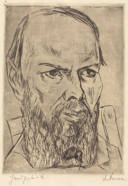 Curator: Here we have Mykhailo Boychuk’s "Andrei Sheptytskyi," a charcoal and pencil drawing from 1912. It resides here at the Lviv National Art Gallery. Editor: Wow, there's such a directness to this portrait. The man’s got such a serious, world-weary gaze. It feels like he's seen centuries pass by. You can almost smell the incense and hear the whispers of ancient prayers, can't you? Curator: Indeed. Andrei Sheptytskyi was a prominent religious and cultural figure, and Boychuk’s rendering captures that sense of gravity. Considering its time, the portrait hints at expressionistic styles which had not yet spread across Europe. But most interesting is its function: a portrait meant to be quickly understood by a public not necessarily versed in fine art. Editor: I get that. There’s something almost…folksy about it. While there’s clear skill in rendering, say, the texture of the beard or the fall of light across his face, the lines are simplified, and he's immediately recognizable as a pillar of faith, which in that era of nation-building and political instability, the figure must be very important, even essential to preserve in artistic memory. Curator: Absolutely. This piece predates Boychuk’s more renowned monumental art, but you can see the seeds of his aesthetic here. He and his peers of the Ukrainian avant-garde grappled with connecting art and national identity, so images of influential clergy such as this was an obvious starting point. Note that Sheptytskyi himself played a crucial role in fostering Ukrainian art and culture, a patron when such roles where less formalized, even suppressed, in Eastern Europe at the time. Editor: I can imagine. It makes the portrait more potent, a conversation between artist and subject about their culture and their moment. Now that you say this, I want to ask - isn't it daring to show this degree of vulnerability to create, not an icon of faith but of *a person*, who *happens* to embody faith in the public consciousness? A face so human you know what his mood is the moment you encounter this work of art! Curator: Precisely! And perhaps, as a result, its public appeal lies in precisely what seems folksy about it. It’s accessible, conveying something deeply spiritual, and deeply rooted in that period, despite feeling remarkably fresh and expressive, a bridge between his world and ours, in the present. Editor: Beautifully said.