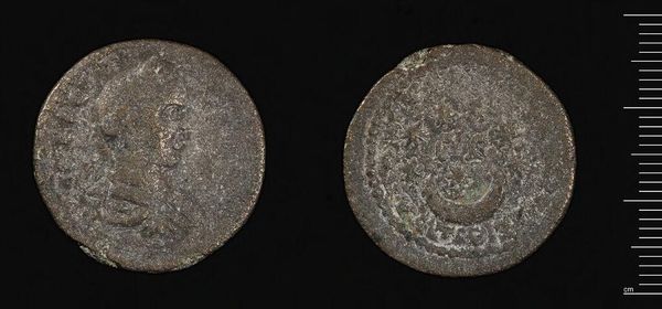 Curator: Up next we have a Coin of Nikopolis under Caracalla residing here at the Harvard Art Museums. Caracalla, of course, being the emperor himself. Editor: The worn surface and dark patina evoke a sense of history and power, yet something about its small scale also feels... vulnerable. Curator: Indeed. The coin's design—the imperial portrait, any inscriptions—served as potent propaganda, reinforcing the emperor's image and authority across the vast Roman empire. Editor: Propaganda that upheld a brutal regime; Caracalla’s reign was marked by violence and oppression, a reminder that even small objects can symbolize larger power dynamics. Curator: The formal composition, though, achieves a fascinating tension through its miniature dimensions. Editor: And it is a powerful reminder of how even something so small and seemingly insignificant can be a powerful tool of control. Curator: A truly thought-provoking interplay of form and historical weight. Editor: A lasting memento that underscores how objects carry encoded political meanings through time.