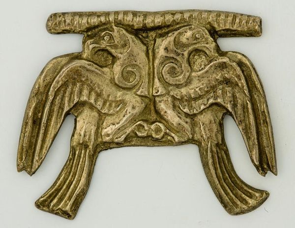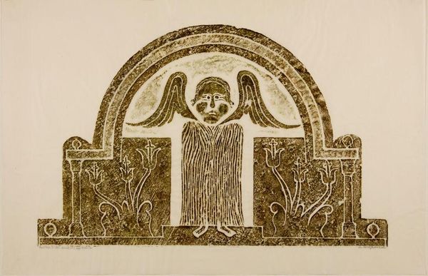 Editor: This is "Lucinda Day, Chester, Vermont, 1800" by Ann Parker, housed at the Harvard Art Museums. It’s a peculiar print – the image of a bird with a human-like face is striking. What symbols do you see in this piece? Curator: The bird-human hybrid immediately evokes ancient mythologies— think of the Harpies or perhaps even a guardian spirit. Note the circular frame; does it suggest a shield, a mirror, or even a portal of some kind? Editor: I didn’t think of it as a portal. So, the face within the bird suggests more than just decoration; maybe it’s a protective emblem? Curator: Indeed. The artist might be tapping into very old archetypes— the bird as messenger, the face as a representation of inner self, a convergence to protect Lucinda. How does this strike you now? Editor: I see a connection to ancient beliefs. It makes me think about how symbols persist, even unconsciously. Curator: Precisely. It reveals how deeply rooted our cultural memories are.