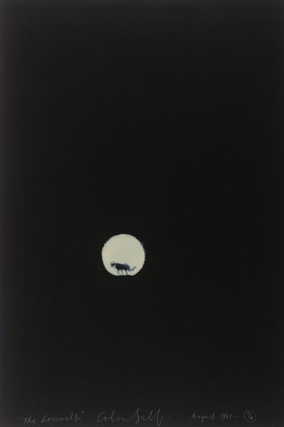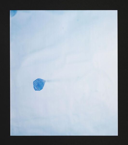 Curator: Here we have Maria Magdalena Campos-Pons' "Elevata, Row 1, column 3", currently held at the Harvard Art Museums. Editor: It feels like a dream, a quiet sky with a single, bright blue stone floating in the middle of nowhere. Almost unsettling, in its peace. Curator: Campos-Pons often explores themes of memory, displacement, and identity, and the materiality of this work—its paper and pigments—speak to both fragility and the enduring nature of stories. Editor: It makes me think about what we choose to hold onto, those singular, intense moments that become our personal talismans. Like that blue stone. Curator: Exactly, the social context and the act of choosing what to elevate from the chaos of experience is key to this piece. Editor: It is a tiny island of blue, adrift. Maybe we all need a little island sometimes. Curator: Well said. It’s a potent reminder that the selection and preservation of memory is a material act. Editor: A poignant, solitary gesture in a blue universe. I like it more now.