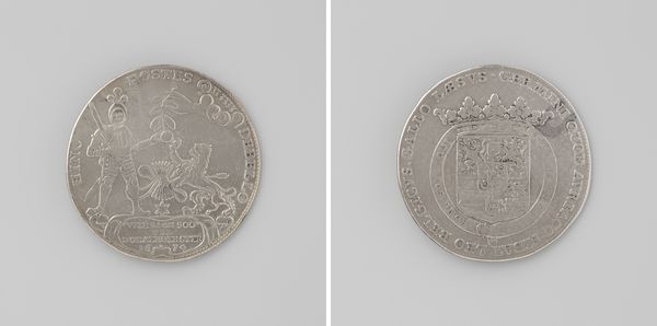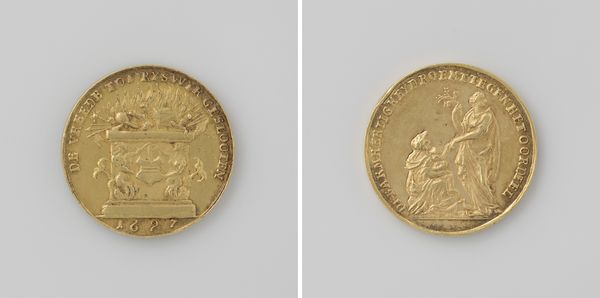 Editor: Here we have the "Vrede van Munster," dating back to 1648. I'm immediately struck by the incredibly intricate detail on such a small object. It almost feels like peering into a tiny, bygone world. What stands out to you about this piece? Curator: It’s not just the detail, is it? Think about the hands that made this, what they saw. This coin, likely silver, isn’t just a commemoration; it's a pocket-sized echo of a monumental event: the Peace of Munster, ending the Eighty Years' War. Look at the allegory! On one side, the city skyline, bathed in heavenly light. On the other, peace, personified as a woman, offering olive branches. But it’s the weight of history pressed into something you could hold in your palm. I imagine those who carried it... Editor: That's fascinating. So, it's less about artistic flair and more about its historical significance? Curator: Well, is it *either* *or*? I think there is incredible artistry in effectively communicating something so crucial and historically relevant. The decision to render the city with such fidelity… those minute details are potent! They speak of prosperity, a renewed hope. Plus, think of the symbolism resonating even today! And who decided what needed to be portrayed on this object and who approved? Layers and layers! I would just love to handle the original object and look at the patina! What if that piece could talk to us! Editor: It's amazing to think of it as a little time capsule. I'll definitely be viewing coins differently from now on! Curator: Exactly! And that is all that matters, dear student, that now you know something new.