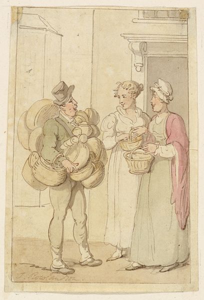 Christina Chalon rendered this watercolor of a woman with child and two men, sometime in the late eighteenth century. The image is not just paint, but also the paper underneath. Note how Chalon left the ground blank, allowing the off-white color to define the plane. Watercolor is a very intimate medium. Unlike oils, it does not allow for layering, so each brushstroke must be decisive. Also, it is water-based and so dries quickly. It’s perhaps because of this directness that women artists like Chalon were drawn to the medium, since they were often excluded from the more formally sanctioned world of oil painting. It is worth noting the skilled labor of paper making here too; from the rag-picking and pulping to the pressing and sizing, paper was a precious commodity in the 1700s. So this modest watercolor encapsulates a whole network of creative practices, from the high art of painting to the more humble realm of craft.