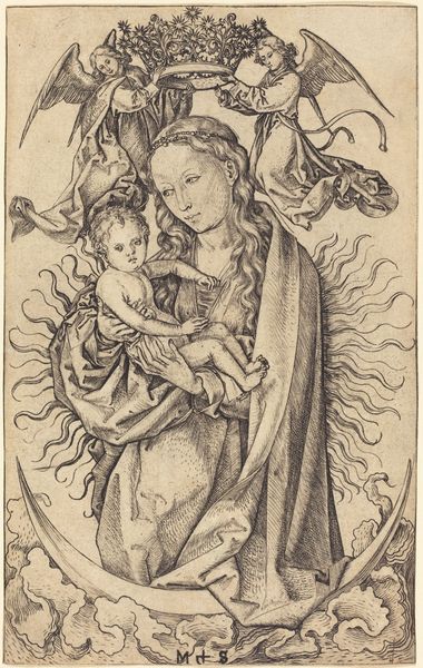 Here we see a stained glass window depicting the Madonna and Child, made by Pieter Coecke van Aelst. Above the Virgin’s head are cherubic heads, a motif that hearkens back to classical antiquity, where winged figures symbolized divine messengers. But here, they're rendered with a tender softness characteristic of the Renaissance, reflecting a shift from the severe to the more humanistic. Consider the motif of the Madonna and Child itself. Across cultures and epochs, the image of a mother cradling her child resonates deeply. Think back to ancient Egyptian depictions of Isis with Horus, or even earlier fertility figures, reflecting our innate, perhaps subconscious, fascination with nurture and protection. The persistence of this image speaks to its potent emotional charge, and its enduring relevance. Note how the Renaissance cherubs echo those earlier forms, yet with a distinct cultural inflection. This exemplifies how artistic symbols evolve, their meanings layered over time. This window, like all art, acts as a cultural palimpsest, each layer whispering stories of human experience and collective memory.