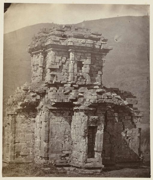This photograph by Isidore Kinsbergen captures the Candi Arjuna temple, built from stone in Central Java between the 8th and 9th centuries. Look closely, and you can appreciate the sheer labor involved in quarrying, transporting, and carving the stone blocks. The temple's appearance is defined by the stone itself – its weight, texture, and the way it weathers over time, all visible in Kinsbergen's photograph. The skilled labor required to construct this temple reflects deep cultural significance. Traditional Javanese craftsmanship, passed down through generations, shaped the very structure you see. This wasn't just construction; it was a creative practice embedded in community knowledge and artistic expression. Considering the temple’s material and construction methods helps us understand its social context. It represents not only a place of worship but also a testament to human ingenuity. Appreciating the craft involved challenges traditional art distinctions, revealing the artistry inherent in functional and spiritual structures.