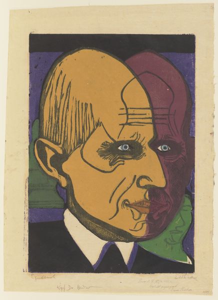 Editor: This is "De Notenkraker, 9 februari 1907 / Rijssen," possibly from 1907, by Albert Hahn. It's a lithograph poster, and the first thing that strikes me is the stark contrast and the palpable sense of sorrow in the subject’s face. What symbols or narratives do you think Hahn is trying to convey here? Curator: The face is everything, isn’t it? Hahn understands the enduring power of the human face, particularly in times of social change. Notice the woman’s traditional bonnet, contrasting with the industrial skyline looming behind her. The weight of modernity presses in, quite literally framing her anxiety. It speaks volumes about the psychological cost of progress. Editor: The skyline really does emphasize the vulnerability of her expression. I also noticed the title “De Notenkraker,” which I believe translates to “The Nutcracker." It’s intriguing to think about cracking open something tough – perhaps traditional values or a way of life? Curator: Precisely. And think about the image associated with the "nutcracker"—a mechanical, sometimes brutal tool. Hahn asks us: What is being sacrificed on the altar of progress? Who is being crushed? This image is not just about one woman; she is a symbol for a community facing upheaval. Consider how the Art Nouveau style softens what is a powerful socio-political commentary, embedding in it both beauty and brutality. Editor: So the poster itself functions as a kind of mirror, reflecting anxieties about industrialization and the loss of tradition? Curator: Indeed. Hahn utilizes familiar symbols to tap into collective cultural memory, making the impact of modernization felt on a deeply personal level. And this personal impact also leads the viewer to a larger, societal level of understanding. It's a visual argument about the human cost of change, wouldn't you say? Editor: I think you’re right. Looking at it this way helps connect the specific details to broader themes. I hadn't quite grasped the full weight of the cityscape at first, but now it changes the whole message for me.
