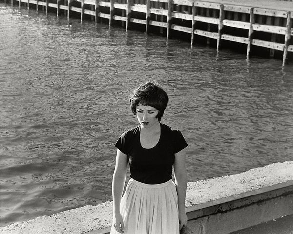 Cindy Sherman made this black and white photograph, Untitled Film Still #24, at some point in the late 1970’s. It's part of a series where she embodies different female characters from film, playing with stereotypes and the way women are seen. The image has a grainy texture, like an old movie. The contrast between light and dark gives it a dramatic feel. Look at her hair, how it frames her face, and the way the light catches her eyes, which adds to the mood. The industrial landscape in the background is just as important. It provides a narrative context, turning the photo into a filmic tableau. Sherman's work reminds me of artists like Eleanor Antin, who also used their own bodies to explore identity. There's something fascinating about how artists like Sherman can create so much depth and meaning through a single image, making us question the stories we tell ourselves.