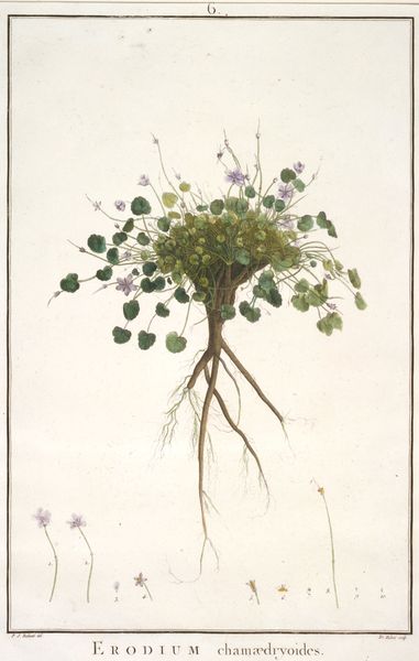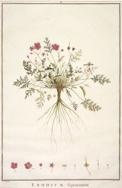 François Hubert masterfully rendered this Geranium varium with watercolor, ink and graphite. Note the precise arrangement, characteristic of botanical studies: the plant in full bloom, accompanied by detailed analyses of its components at the bottom. The geranium, beyond its delicate beauty, has been a recurring motif throughout history. In Victorian England, giving a geranium implied the giver's determination in friendship. Yet, if we reach further back into the Renaissance, flowers were frequently incorporated into portraiture and allegorical works, each bloom chosen for its symbolic weight. Recall Botticelli's "Primavera," where myriad flowers are scattered, each contributing to the rich tapestry of meaning. Here, Hubert's careful rendering invites us to reflect on the enduring human fascination with the natural world. A silent, yet powerful dialogue of the heart.