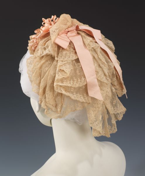 This mantle was made by Jay's of London out of cotton and lace. This delicate confection speaks volumes about the social and economic context of its time. Looking at the intricate lacework, we can appreciate the skill and labor involved in its creation. In the 19th century, London was at the heart of the Industrial Revolution, and the mass production of textiles transformed fashion. Lace, once a luxury only for the aristocracy, became more accessible to the growing middle class. The mantle can be viewed as a symbol of aspiration and upward mobility. Its whiteness suggests purity and status, reflecting the social values of Victorian society. To fully understand its significance, we might delve into trade records, fashion magazines, and social commentaries. The mantle serves as a reminder that art and fashion are never created in a vacuum, but rather are reflections of a particular moment in time.