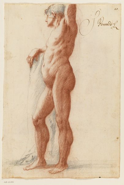 This drawing depicts a standing nude woman raising her left arm, rendered by an anonymous artist in brown ink. This gesture of the raised arm, simple as it may seem, carries a profound weight. In antiquity, we find it in depictions of victory and supplication, a reaching out to the heavens. Think of the figures in classical friezes, their arms raised in triumph or despair, or of the Christian orant, arms lifted in prayer. This motif, laden with emotional intensity, resurfaces again and again. The raised arm evokes a deep, subconscious response, an embodiment of human yearning, struggle, and resilience. It is an echo of our collective past, a testament to the enduring power of the human spirit to confront the vicissitudes of existence. This image, therefore, is not just a study of form, but a mirror reflecting our shared human condition.