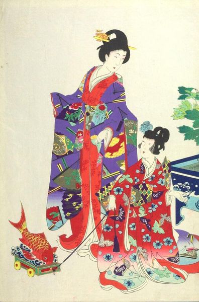 Erte’s “The Coming of Spring” presents us with an ornamental figure emerging from a vibrant yet contained landscape, rendered with a blend of Art Deco elegance and theatrical flair. The composition is strikingly divided: below, a vivid yellow field dotted with red, and above, a serene blue that morphs into a storm of jagged forms. The female figure is stylized, almost like a mannequin adorned with plant-like patterns, suggesting a symbiosis with nature. The high contrast in color, especially the transition from warm to cool tones, dramatizes the sense of emergence and transformation. Erte’s strategic use of line guides the viewer's eye, reinforcing the idea of a staged event, a spectacle of renewal. Through its stylized form and dramatic composition, "The Coming of Spring" becomes more than just a decorative piece; it’s a semiotic play, challenging our understanding of natural cycles by rendering them in a highly artificial, theatrical context. What we see here is not nature observed but nature performed, inviting us to reconsider our relationship with the environment as a crafted spectacle.