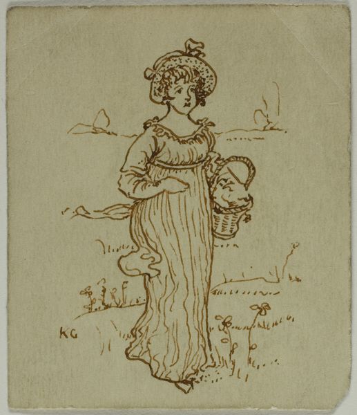Editor: This is "Young Woman Bearing Flowers," a drawing from 1812 by Samuel Lane, rendered in pencil, chalk, graphite, and ink on paper. I’m struck by the flowing drapery and her idealized form, it feels very neoclassical. What are your thoughts when you look at it? Curator: I’m drawn to consider the material reality behind this idealized representation. The choice of pencil, chalk, graphite and ink, common and relatively inexpensive materials at the time, reveals a focus on accessibility and potentially wider consumption beyond the aristocratic elite who typically commissioned portraits in oil. What kind of labor went into producing the paper itself? And who would have been consuming images like this and how would they use it? Editor: That’s interesting; I hadn't considered the paper's own production! What’s significant about the subject herself in relation to material concerns? Curator: The flowers she bears become interesting in that light. Are they symbols of aristocratic leisure – greenhouse rarities? Or, given the historical context of shifting social structures and nascent capitalism, do they perhaps hint at emerging floral markets and a new type of consumption available to a broader segment of society? Note also the style of her sandal. Its sculptural elements—their production may relate to local crafting networks, small scale workshops versus emerging factories. These details point us toward thinking of representation less as simply imitation and more as something entangled in a web of material culture. Editor: I see. So it's not just about what's depicted, but the materials and processes tell a story about consumption and labor too. Curator: Precisely. And even access to art making was a material question of economy and available means. Editor: This definitely gives me a lot more to think about beyond just the surface-level image of beauty. Curator: Exactly! Thinking about how art is MADE, not just what it represents, opens up entirely new perspectives.