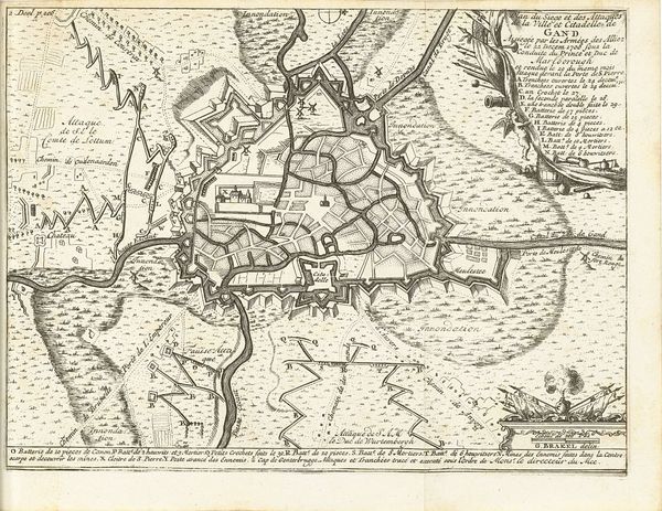 Here is the script for the audio guide: This detailed engraving by Matthijs Pool, created around 1709, depicts the siege of Mons. Note the intricate network of fortifications surrounding the city, a visual symbol of power, protection, and resistance during times of conflict. The star-shaped fort, or bastion, prominently featured here, is an architectural motif that echoes through history. We see its earlier manifestations in Italian Renaissance fortresses, designed to resist cannon fire. This symbol of military might transcends mere functionality; it becomes a potent emblem of dominance. This pattern evokes a sense of security, an eternal recurrence of defensive structures meant to ward off existential threats. Consider how the geometric precision of these fortifications contrasts with the organic contours of the landscape. It reflects our psychological need to impose order on the chaos of the world, to assert control over the unpredictable forces of history. The act of mapping itself, as seen here, is a symbol of this ambition. We see a cyclical progression of defense mechanisms, from ancient walls to modern fortifications, each attempting to secure territory and instill a sense of safety.