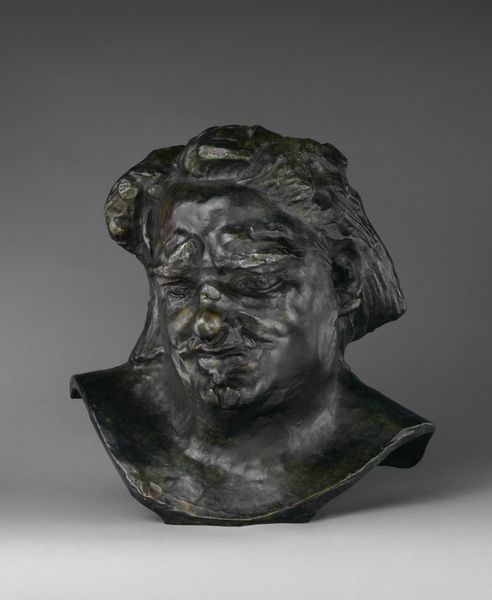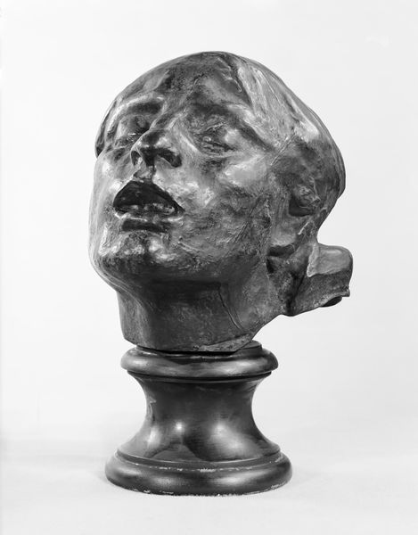 Curator: Here we have Picasso's bronze sculpture, "Head of a Woman (Fernande)," dating from before 1932. What strikes you immediately about this piece? Editor: The angular planes! They remind me of cut gems. There is a captivating tension in how those facets both dissect and reconstruct her likeness. Curator: Indeed. Viewing the processes involved—Picasso modeling the original clay, the plaster mold, and finally, the bronze casting—helps understand the dynamic shifts from malleable form to fixed object. Considering this, the distortions take on a new meaning. It isn’t merely abstract; it is a recording of the transformation of labor and material. Editor: I see it slightly differently. The interplay between light and shadow on the bronze surface is masterful, transforming a static material into something that feels alive, in constant dialogue with the changing environment and also consider that bronze’s reflective quality draws our eye to specific areas, playing up the sculpture’s structure, its formal anatomy. Curator: But also consider, Editor, the historical implications. The labor was likely divided, involving artisans at a foundry who took on different stages. The industrial aspects influence the perception and valuation of such 'high art,' doesn't it? Editor: Perhaps, yet the formal tensions remain. I keep circling back to those shadowed recesses near the mouth. It gives Fernande this impenetrable, unknowable expression. Despite the fragmentation, there’s still this essence of a human psyche captured through carefully organized lines. Curator: To me, it is an artwork that speaks about the processes inherent in creation, reproduction and recontextualization. Editor: And for me, the aesthetic tension is what brings the subject to life! Well, it is up to the observer. Thank you for discussing art, as always. Curator: My pleasure, the pleasure is all mine. Let us continue, after a brief pause.