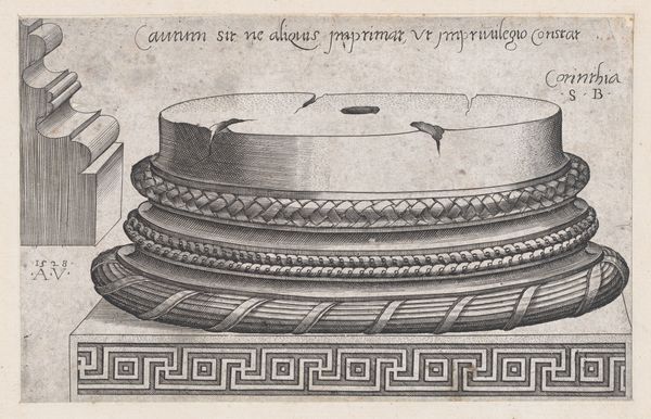 Agostino Veneziano created this print, Ionic Base, as part of the Speculum Romanae Magnificentiae, an architectural book, around 1528. It presents a detailed study of classical forms during the High Renaissance when Rome was being visually and architecturally reimagined. Veneziano, as an engraver, played a vital role in disseminating classical designs. His work helped shape the visual culture of the time. This print reflects the Renaissance fascination with classical antiquity, but also the artist's emotional response to Roman grandeur. The Ionic base isn't just a structural element. It's a symbol laden with cultural meaning. The base’s intricate carvings evoke a sense of the past, embodying values of order, reason, and beauty. While adhering to classical conventions, the print invited viewers to contemplate their cultural heritage and its relevance to their contemporary world. This print serves as a reminder of how art can reflect societal values and individual experiences. It is a convergence of historical inquiry and personal appreciation.