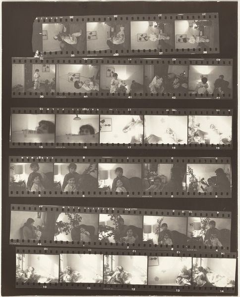 Editor: Here we have Robert Frank’s gelatin silver print, "D.A.R.--Los Angeles," from 1956. It captures a moment that feels both formal and somewhat… awkward. What do you see in this piece? Curator: The power of this image lies in its construction. Note the strong horizontal line created by the draped table. This divides the picture plane, creating a clear distinction between the figures and the space above. Consider the varying textures: the smoothness of the wall contrasting with the floral decorations, all rendered in shades of gray. How do these formal elements contribute to the photograph's overall feeling? Editor: It creates a sense of division, almost like the figures are boxed in by the table and the frame. Is there a particular significance to the table itself? Curator: It serves as both a physical barrier and a stage. The individuals behind it are elevated, but also constrained. Their gestures, frozen in time by Frank's lens, lack a sense of true dynamism. The very deliberate, but seemingly random placement of the microphone also disrupts the balance. Editor: I see what you mean about the microphone throwing off the balance, but in an intentional way. It almost seems to undermine the formality. I never thought about photographs like that before! Curator: Precisely. Frank uses these structural imbalances to great effect. It invites questions. The interplay of light and shadow, too, creates depth and adds to the image's complexity. Understanding these formal aspects unlocks new interpretations. Editor: That's incredible. Paying attention to the form allows you to uncover hidden meanings that you'd otherwise overlook! Curator: Indeed. Formal analysis is key to unlocking the intricate layers within art. Now, when you look at this piece, do you feel differently about its mood, the composition, and how it makes you feel overall? Editor: Absolutely! Thanks to you, I’m looking at photography with a fresh, and hopefully more educated eye!