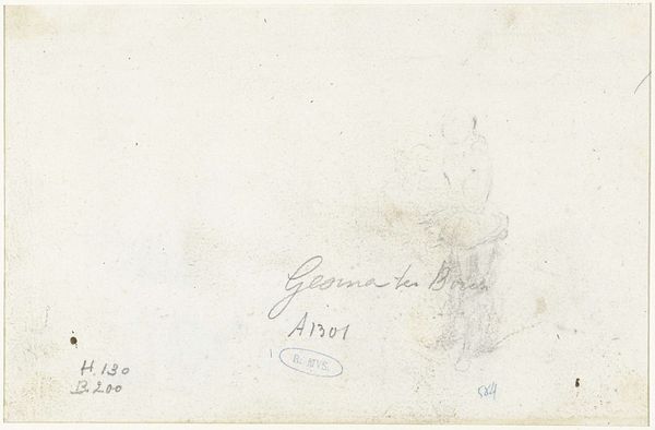Curator: Welcome. Before us, we have "Sketch of a Horse," a pencil drawing on paper, crafted circa 1660 by Gesina ter Borch, housed here at the Rijksmuseum. Editor: Hmm, feels like a ghost horse. Faint, ephemeral. As if it might disappear if we blink. And is it just me, or does the minimal rendering convey an almost painful sensitivity? Curator: The economy of line is striking. Ter Borch’s mastery is evident in how she articulates form with such sparse mark-making. The composition leads our eyes immediately to the almost disembodied equine head, which dominates the plane. Notice the acute rendering of musculature implied in such scant linework? Editor: Absolutely! But it's not just about anatomical precision, is it? This quick, almost gestural approach – is it a study, or does it reveal more of the artist's interior landscape? Was this just a passing fancy captured with some hurried, scribbled marks or part of a bigger vision for a finished painting? Curator: I suggest it’s both, editor! Its fragmentary nature underscores the process of artistic ideation. Observe also, however, how the overall tonal values produce depth—the light modeling upon the horse’s brow gives an illusion of volume and substance, set off against the relative flatness of the paper ground. Editor: Right, and despite its fragility, there’s an undeniable energy to it. Ter Borch really understood her subject. It makes you wonder what she saw in this animal beyond just form and how it became an avenue for this kind of expression. Curator: Undoubtedly, the dynamism implicit in this relatively unfinished piece contributes substantially to the enduring appeal. Ter Borch harnesses linear reduction in service to implied potentiality. Editor: Yes. To have this single glimpse feels very intimate and really allows you to project a sense of wonder onto the horse. Curator: Indeed, an exemplary encapsulation of fleeting inspiration. Editor: A very spirited steed captured through very subtle means, a really wonderful paradox.