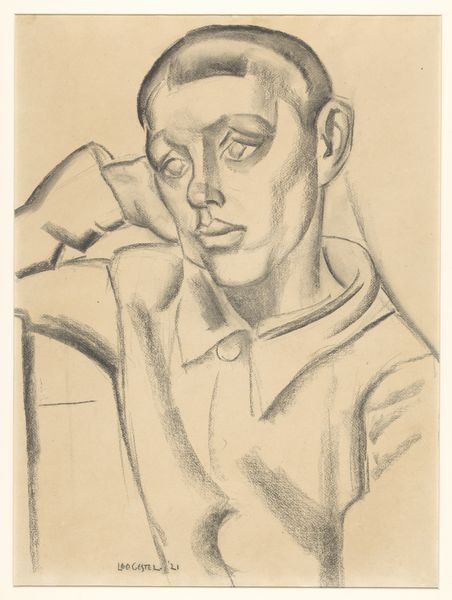 Editor: We’re looking at Bernhard Kretzschmar’s "Self-Portrait" from 1924, created as a print using etching and graphite. It has a haunting quality; the lines are stark, especially around the eyes. How do you interpret this work focusing on its formal elements? Curator: The power of this portrait lies indeed in its linearity and tonality. Consider the economy of line – each stroke is deliberate, contributing to the overall structure of the face. The strategic use of darker graphite establishes deep shadows, particularly around the eyes, creating a dramatic chiaroscuro effect. Notice how the starkness is achieved without relying on color? Editor: Yes, I see it. So, the composition and line work are fundamental here. What about the surface quality – the actual texture of the print? Curator: The etched lines, thin yet firm, define the form, and create a tangible surface quality. It invites contemplation of the process itself: the artist's hand guiding the etching tool, the deliberate choices in applying graphite to manipulate light and shadow. The print itself creates a unique, reproducible surface, doesn’t it? How does it strike you? Editor: It’s fascinating how much emotional depth is conveyed with what seems like very limited means. Focusing on these core elements gives a much clearer sense of the artist's intention, and the impact they wanted to have. Curator: Precisely. Stripping away extraneous narrative allows the fundamental elements of line, tone, and composition to communicate directly with the viewer. Hopefully, the focus on form sheds a new light on the depth of Expressionism, as seen here.