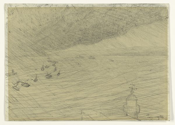 Editor: Right now, we're looking at William Trost Richards' "Coast of Cornwall," made sometime between 1875 and 1880. It's a pencil drawing. I find the scene quite serene; the textures of the rocks contrast with the smoothness of the sea. What's your take on this, and how does it connect with its time? Curator: Well, hello! It's almost as though Richards took a moment to quietly whisper to the paper – a graphite secret. To me, this image sings of the Romantic era's passion for the sublime beauty of nature, distilled through realism's keen eye for detail. Feel those windswept Cornish cliffs, Emily, captured with delicate yet certain strokes! Don’t you get the urge to perch right there and sketch beside him, lost in thought? Editor: I do now! The detail is incredible for a pencil sketch. What kind of viewer do you think Richards had in mind? Curator: A kindred spirit, I’d imagine. Someone yearning for that solitary communion with nature. I suspect this wasn't intended for a grand exhibition but was more of an intimate offering, like a personal meditation on the wild. Tell me, does that slightly unfinished sky give you a sense of longing? Editor: Definitely. It’s like the horizon’s calling you. Curator: Exactly! And that sense of longing, that emotional resonance combined with such sharp observation…it's a quiet revolution on paper, a whisper against the roar of industrial progress. Editor: So, Richards offers both accurate realism and a romantic perspective? Curator: Absolutely! The drawing encapsulates a moment, yes, but it's a moment steeped in feeling. That makes it a far richer encounter for us, doesn’t it? Editor: For sure! Now I see much more of its subtleties and emotional impact than before. Thank you!