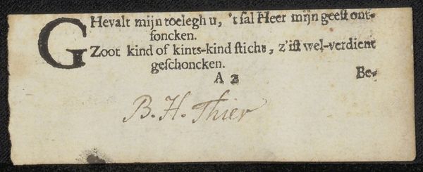 This lottery ticket, or 'Loterijbrief', was created in 1820 by D.C. de Groot Jamin. Printed on thin paper, this humble artifact speaks volumes about the economic life of the time. Notice the typography, carefully set, and the handwritten signature guaranteeing its authenticity. These details reflect a society where printed matter was becoming more common, yet still retained the personal touch of handcraft. Consider the risk and hope embedded in this piece of paper. The lottery offered a chance for social mobility, appealing to the dreams of ordinary people. This fragile ticket embodies the aspirations and anxieties of a society grappling with emerging capitalist structures, where luck and chance played a significant role. By examining the materials and production of this lottery ticket, we gain insight into the broader social and economic context of the 19th century. It reminds us that even the simplest objects can tell complex stories about labor, class, and consumption.