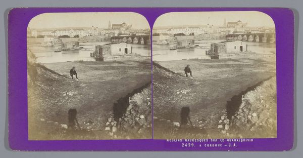 Editor: Here we have Jean Andrieu’s photograph, "Gezicht op de Puente de San Martín te Toledo," created sometime between 1862 and 1876, an albumen print showcasing the city. The overwhelming earth tones really give this a stoic, historical presence. What kind of context should I keep in mind as I look at this? Curator: That’s a wonderful initial observation. This photograph, like many cityscapes of the period, speaks to a broader interest in documenting and romanticizing historical sites. Consider the political and social climate of the time; photography was becoming increasingly accessible, allowing for the widespread dissemination of images of power and cultural significance. How do you think this technology and distribution impacts art during the 1800s? Editor: It feels almost like these historical sites were being “advertised,” allowing for a growth in national identity through visual association. It gives regular people access. But with that much reach, were there controls or censorship? Curator: Precisely! There's a definite element of national pride and identity formation. And yes, absolutely. Control and censorship varied depending on the political landscape of different nations. In some contexts, photography was used to reinforce state narratives, while in others, it became a tool for social critique. What details stand out to you in relation to possible manipulation or framing, even in this image? Editor: The viewpoint. Taking it from far back presents an imposing ideal that minimizes signs of ordinary life, romanticizing the whole. Plus, it almost looks untouched, which certainly wasn’t true. I hadn’t really thought about how photography might play into politics. Curator: Exactly, a clean slate is more enticing. Considering the photographic processes used during the 19th century reminds us how photographic realism always conveys certain cultural messages. It’s been a pleasure diving into this with you today. Editor: It was a good dive for me as well; seeing how something I thought was straightforward has so much lurking underneath!