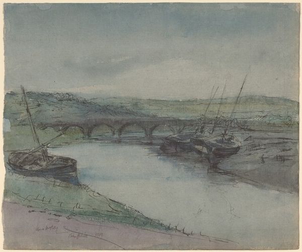 Editor: Here we have Thomas Girtin’s watercolor, "Morpeth Bridge," created around 1796. I’m immediately drawn to the delicate rendering of light on the water and buildings. What significance does this scene hold within its historical context? Curator: Girtin’s work encapsulates a crucial moment in British art and social history. Morpeth Bridge, a vital piece of infrastructure, symbolized connection and commerce. How does Girtin’s depiction of it, rendered with such seemingly objective beauty, participate in the burgeoning culture of picturesque representation that defined England's self-image at the time? Consider the way artists were commissioned to document landmarks and landscapes. Editor: It seems that these works served almost as PR, burnishing the image of England for both domestic consumption and for audiences abroad. Do you think the romantic style was almost designed to soften some of the harsher realities of life? Curator: Absolutely. While these scenes appear idyllic, the period witnessed immense social change. Rapid industrialization transformed landscapes, contributing to both wealth and poverty. Did artists like Girtin actively obscure those emerging problems with their compositions, and what role do institutions like ours have in challenging the assumed narratives promoted through imagery? Editor: So it's almost as if there is an institutional drive, both at the time and possibly perpetuated today, to put forward a certain idealized picture. Something to think about. Curator: Indeed. Reflecting on the image’s presentation in our gallery space allows us to question those very forces and narratives, making the artistic endeavor something much larger than a pleasing visual encounter. Editor: This piece encourages me to consider how landscapes were shaped not just by nature, but by social and political factors of the time, making art a powerful conveyor of those forces.