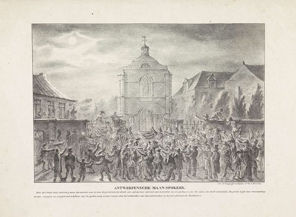 Curator: Vincent Jansz. van der Vinne created this pencil and ink drawing titled "Aankomst van Fransen op de Grote Markt te Haarlem, 1795" which translates to “Arrival of the French in the Grote Markt in Haarlem, 1795.” Editor: Oh, there’s a melancholy softness to it, isn’t there? The grey tones wash over everything like a faded memory. It looks less like a conquering arrival and more like a weary parade. Curator: It is interesting you say that. Consider the historical context: the Batavian Republic was declared earlier that year. The French arrival in Haarlem marked a significant shift in power dynamics, reflecting the ripple effects of the French Revolution across Europe. Editor: Yes, history whispers in every line, doesn't it? I'm struck by how Van der Vinne captures the spatial relationships – the imposing architecture towering over the figures almost seems to dwarf them. What did it mean, socially and politically? Was it celebration or resistance? Curator: The architecture, specifically the Grote Kerk, symbolizes established power, witnessing a historical shift. Van der Vinne was a member of the Haarlem Guild of Saint Luke, so we know that there were some connections. The composition hints at that social tension. The arrival, presented almost neutrally, leaves space for interpretation, possibly reflecting the divided sentiments of the Dutch populace toward French influence at the time. Editor: Divided sentiments indeed! You see it in the individual figures – are those curious onlookers, reluctant participants, or something else? It almost begs us to ponder what liberation truly means. This drawing has such restraint, but also, in my own peculiar view, there are quiet reflections on nationalism. It really moves you, in some strange way. Curator: Indeed. Its subtle technique combined with its historical setting offers much to consider, regarding Haarlem and beyond. Editor: Absolutely! The work embodies, in a way, the complex relationship of art, power, and observation that I shall definitely ruminate about longer.