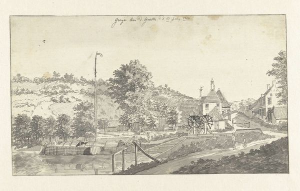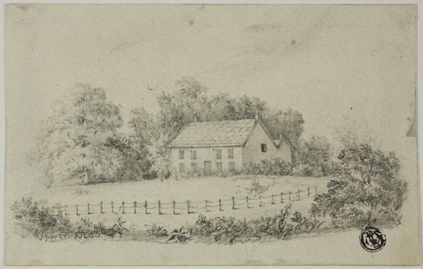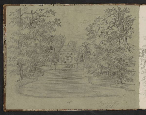 Curator: This is Johannes Tavenraat’s "Huis Rhederoord," a pencil drawing on paper from 1833, currently residing here at the Rijksmuseum. Editor: The first thing that strikes me is the sense of tranquility. The soft pencil strokes create an ethereal atmosphere. It almost feels like a dreamscape. Curator: That dreamy quality is definitely tied to Romanticism, a movement deeply entwined with depictions of landscapes like this. But I’m more interested in how Tavenraat's rendering invites us to question access to these spaces and for whom they provided idyllic settings. Editor: Ah, interesting. I see how you read the landscape through the lens of social critique. From an iconographic perspective, the house itself acts as a symbol. Buildings often represent stability, order, but even privilege depending on who inhabits it. Curator: Exactly! This wasn't just a picturesque scene, it represented social power. Who had the leisure to enjoy this 'natural' setting? We have to ask what these curated landscapes mask. This house is perched atop the hill, suggesting the elevation and insulation from certain community life. Editor: Yes, and that physical elevation is visually echoed. Notice how the path guides our eye inexorably towards the house. The house embodies ideas of attainment or aspiration. Curator: Right, and thinking about the Romantic era in the Netherlands, it's vital to see the artwork as possibly representing the prevailing colonial narrative and legacy for people who identify as native and indigenous groups. How does seeing that type of landscape change when that social aspect is brought into it? Editor: That contextualization makes it more unsettling. It shifts the weight of the symbolism considerably. It becomes less about peaceful domesticity and more about visible, constructed power dynamics. The trees are still soft, but there is a hard line from our viewing point to the structure itself. Curator: So it shows a simple sketch becoming an object deeply connected to broader political issues. We are invited to engage in social commentary. Editor: Absolutely. That single drawing manages to contain so much within its deceptively delicate lines. Curator: Bringing this contextual element makes such a tremendous change and reminds me how potent these visuals can still be in society. Editor: I concur. By recognizing its iconography and its place, that artwork reveals multiple, and still visible today, realities and social contexts.
