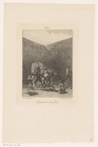 Léon Alphonse Noël created this print titled, "Man en vrouw op ezels", or "Man and woman on donkeys", sometime between 1807 and 1879. Here we see a man and a woman on donkeys, the woman raises a whip above her head. This piece gives us a glimpse into the social dynamics of 19th-century Europe. Consider the nuances of gender and class portrayed here. Who are these people? What kind of relationship do they have? The woman's active pose contrasts with the man's passivity, a potential commentary on gender roles. The donkeys themselves carry symbolic weight. Often seen as beasts of burden, their presence invites us to think about labor, social status, and the relationship between humans and animals. Noël’s print doesn’t simply depict a scene; it stirs a conversation. How does it resonate with your own experiences and observations of the world around you?