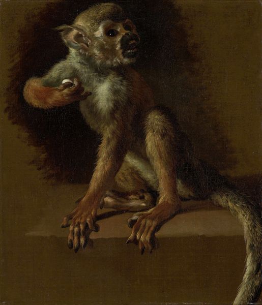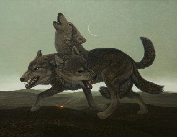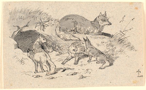 Editor: Here we have John Woodhouse Audubon's "Long-Tailed Red Fox," an oil painting from sometime between 1848 and 1854. It’s striking how alert the fox looks, almost cautious. The color palette is really muted and naturalistic. What catches your eye when you look at this piece? Curator: The fox embodies cunning and adaptability, but notice how the landscape, though softly rendered, almost cages it? The tall grasses feel less like a habitat and more like bars. Think about the 19th century’s relationship with nature. Was it reverence, or a drive to dominate? Audubon was part of that era; the fox becomes both a specimen *and* a symbol. Editor: A specimen, yes, I see that! Its pose does feel studied rather than truly wild. Do you think that tension adds to the piece? Curator: Absolutely. Audubon’s work, while ostensibly about celebrating the animal kingdom, also implicitly captures a moment of ecological anxiety. The fox, poised as it is, carries the weight of a disappearing wilderness on its shoulders. Look at the symbolism inherent to color—its reddish-brown fur isn't just descriptive, it whispers of earthly connection and, perhaps, of the vulnerability inherent in being tethered to the soil. Editor: So, it's a painting about more than just a fox! Curator: Indeed. It's a meditation on our relationship with the natural world. It captures a specific time, loaded with cultural assumptions, but ultimately it provokes timeless questions about our place within it. What will *our* images say about *us* centuries from now? Editor: It’s fascinating to consider those layers, thinking beyond just what is depicted to the cultural story it carries. Thank you for that insight!