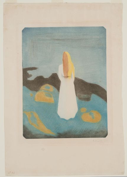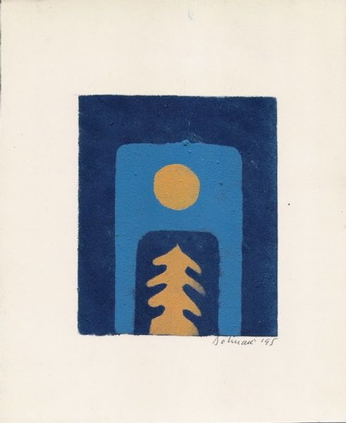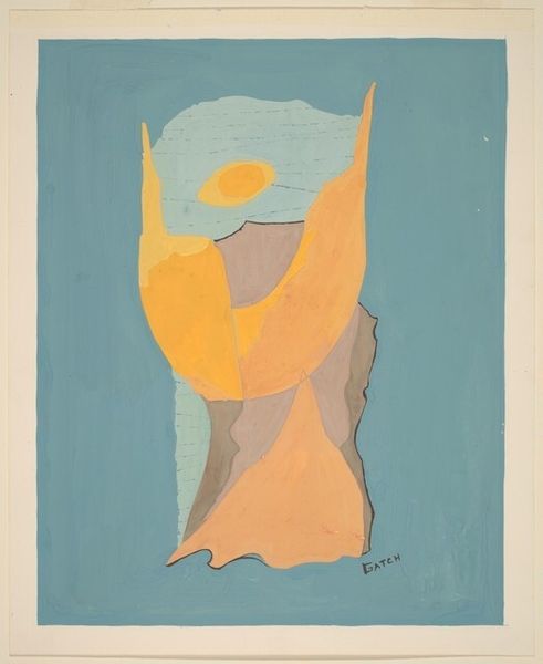 Editor: This artwork, titled "Look How the Moon Steps on the White Lonely Hills" by Vasile Dobrian, appears to be an acrylic paint print. The pastel colors create such a gentle, almost dreamlike feeling. What visual language speaks to you in this piece? Curator: The work intrigues me because it layers several symbolic registers. On the surface, we see a flattened, almost cartoonish landscape contained within the shape of a leaf, maybe a spade, if one reads it from playing cards imagery, evoking luck or fortune. Now, consider the moon: cultures worldwide have long associated the moon with femininity, cycles, and the subconscious. What about these “lonely hills"? What do you associate that imagery with? Editor: Hmm, maybe a sense of isolation, or perhaps the end of something. Like, as the title suggests, a sense of encroaching quietude… Curator: Precisely! Then, consider the colors: soft, muted. These contribute to that quiet mood. Do you feel any tension in it, perhaps through its geometry? It's like a simplified landscape, hinting at something familiar, while simultaneously receding from it. It’s not a straightforward image. It makes one recall emotional connection through memory. Editor: I see what you mean. The colors almost soften the geometry, while the simple forms give way to those underlying cultural themes and quiet narrative. Curator: It seems that Dobrian is trying to hint to visual archetypes; how something elemental like the moon rising above the hills is actually a deeply rooted narrative we subconsciously feel. Editor: That’s fascinating. I definitely see it differently now – I never would have considered the depth of symbolism on my own. Curator: It's often through recognizing these repeating visual cues, these motifs, that we uncover layers of cultural and personal meaning in art. Editor: Well, thank you so much. It has definitely given me a fresh perspective on decoding artwork.