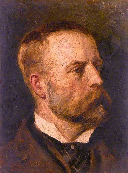 Curator: Ah, here we have “The Orra Man,” an oil painting attributed to Joseph Farquharson. The painting embodies a sort of straightforward, realistic portraiture. Editor: There's a certain solemnity to him, wouldn't you agree? That deep red backdrop contrasting with the stark black of his attire and that crisp white sliver of his collar suggests, to me anyway, a man facing… inevitability. There is a stillness to the way that this figure’s likeness is captured in oil paint. It invites rumination. Curator: Indeed. While “The Orra Man” gives the impression of realistic portrayal, there is a level of expressiveness that one could say comes from the texture and the bold use of dark and light. It does suggest the artist aimed for an emotional depth, though a subtle one, rather than strict, photographic accuracy. It's more evocative than documentary, if that makes sense. Editor: Precisely! And look at the way his face is presented, a profile, nearly a classical pose, reminiscent of Roman busts, of historical portraiture on ancient coinage even. Yet, the realism of the skin tones, that almost painful ruddy complexion, prevents it from becoming a romantic ideal. It’s grounded. It's… very human, this icon. Curator: A man laid bare, perhaps? The Orra Man, whoever he was, seems stripped down, his essence revealed not in finery or grand surroundings, but in the gentle slump of his shoulders, the downward cast of his eyes. We're looking at a study in character, really. It would be easy to forget he has any stories or experiences to draw from. But I would wager he is filled with experience. Editor: An emblem, then, of experience etched onto flesh, rather than grandeur conferred by birth or station. How fascinating. Even the heavy impasto of the paint application contributes. It feels… labored, a life's work laid out for the canvas itself. I love that the style and the chosen medium combine with this man to form something of such potent symbolism. Curator: I see now a reflection on time, how it etches, and transforms. Editor: A powerful echo resonating beyond the painted surface.
