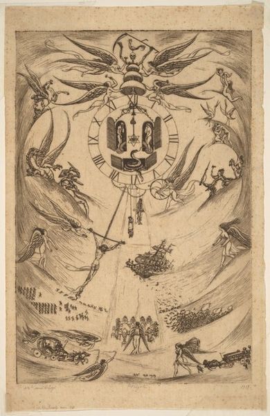 Editor: This is an illustration from "De Cosmographia," by an anonymous artist. It depicts Urania and Orontius with a celestial globe. It feels very much of its time, doesn't it? What stands out to you? Curator: Indeed. Think about the power structures embedded in this image. Urania, the muse of astronomy, is often depicted as an allegorical female figure, while Orontius represents scientific authority. Consider how gender and knowledge intersect here. Editor: So, the woman embodies the idea, while the man possesses the practical knowledge? Curator: Precisely. This reflects the historical context where women's access to scientific knowledge was limited. It invites us to question the social and political forces shaping our understanding of knowledge production, even today. Editor: I hadn't thought about it that way. It's more than just a historical illustration, it’s a statement about who gets to define knowledge. Curator: Exactly! And who benefits from that definition.