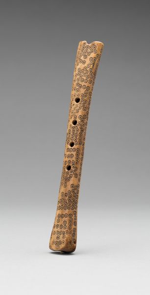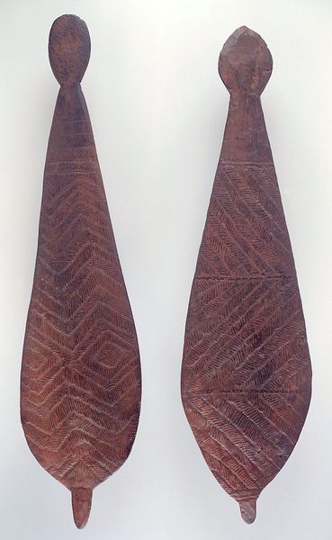 This Dish, of unknown origin, sits here with its carved lines in wood. The process of carving isn’t just about cutting away, but also about revealing what's already there in the material, like finding a drawing within the grain. And speaking of grain, look at the surface: it’s alive with texture. The carver has followed the wood's natural patterns, creating these long, winding lines. The slightly transparent brown tone deepens in the carved areas, giving depth and shadow. These repeated ovoid shapes remind me of the way a painter uses repetition to create rhythm and movement. If you focus on one specific swirl, you’ll see how it echoes the larger shape of the dish itself, a microcosm of the whole. This act of making, of finding patterns within patterns, reminds me of the art of Ree Morton. Both artists share an intuitive grasp of form and a belief in the power of simple materials to convey complex ideas. Ultimately, this Dish invites us to contemplate the endless possibilities of making.