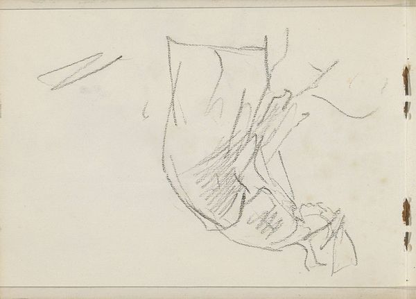 Editor: This is "Man met hoed," or "Man with Hat," a graphite drawing by George Hendrik Breitner, made between 1887 and 1891. It's housed here at the Rijksmuseum. It feels very raw and immediate, like a glimpse into the artist's thought process. How do you interpret this work? Curator: Breitner’s sketchwork invites us into the artist's mind, but it is also a reflection of a cultural milieu. Hats themselves held tremendous symbolic weight in the late 19th century. They signified class, profession, and even personality. But here, in this sketch, that specificity is blurred. Does the sketch become almost more a concept of “man” rather than “*a* man”? Editor: That's interesting. It’s like the hat, normally so descriptive, is almost generic here. More of a signifier than an identifier. Curator: Precisely! And the lines themselves… look how tentative, almost exploratory, they are. He's searching for the essence of the form, isn’t he? Editor: Definitely. You can almost feel him deciding where the lines *should* be. Curator: It becomes a symbolic quest, this act of finding the 'true' line. Every stroke builds on previous ones and the image oscillates. You get that feeling, too? Editor: Yes! Almost like he’s building the idea of a man in real-time. I keep coming back to the hat… like the idea came from seeing the hat on the figure, the drawing becoming secondary to the man's essence.. Curator: It’s as if Breitner uses this readily-accessible motif – this recognizable 'hat' – as the keystone for a collective memory and cultural identity he is attempting to capture. What has stayed with you most from looking at the artwork? Editor: The feeling that art is a process of discovery more than just a final product. Curator: For me too. It underlines how every line tells a story that echoes long after its creation.