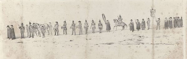 This anonymous drawing captures the somber funeral of King Willem II in Delft, April 4, 1849. Observe the figures cloaked in mourning attire, a sea of black echoing rituals across time. The procession, arranged almost as a frieze, evokes ancient traditions of honouring the departed. The riders on horseback, and the flag bearer, are symbols of leadership and legacy, carrying the weight of history forward. Consider the universality of mourning: the black attire, the solemn procession, motifs that transcend borders and epochs. These recurring symbols remind us of our shared human experience and collective memory. The image’s power lies not just in its historical specificity, but in its resonance with timeless expressions of loss and remembrance.