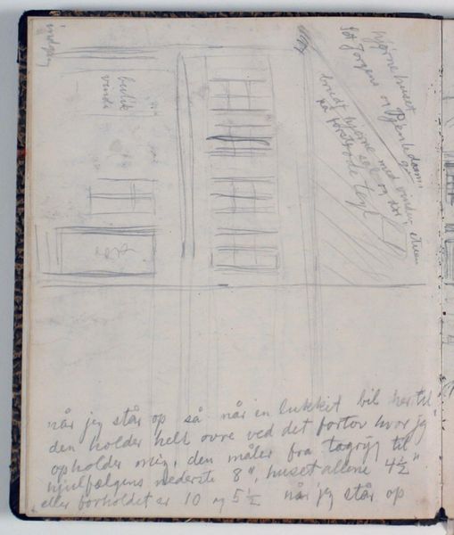 Editor: This is "Skitser af gravmæler. Notater," or "Sketches of gravestones. Notes" by Niels Larsen Stevns, dating from 1905-1907. It's a pencil and colored pencil drawing on paper. There's a casual, almost fleeting quality to these sketches. What strikes you about it? Curator: I'm drawn to the way these sketches reveal societal attitudes towards death and remembrance at the turn of the century. These weren't simply artistic exercises; they reflect evolving cultural norms about how we memorialize individuals and their legacies. What stories do you think these stones tell, both intentionally and unintentionally, about the social values of the time? Editor: That's a great question. The stones seem quite formal, almost austere. Was this a reflection of a certain class or societal expectation? Curator: Precisely. Consider the socio-economic context. Tombstones weren't accessible to everyone. They were often a symbol of status, reflecting wealth and social standing. These sketches could be read as a critique, maybe a subtle commentary on social inequalities, particularly regarding who gets remembered and how. Who gets to be cemented into history, quite literally? Editor: So you're saying these drawings might not just be observations, but subtle critiques? Curator: Exactly. Larsen Stevns might be inviting us to consider the politics of memory and the ways in which power structures are etched, sometimes quite permanently, into our landscapes. Think about whose stories are being told, and whose are being left out. Editor: That reframes my understanding entirely. It’s powerful to consider art's potential to question social norms. Curator: Absolutely. And art like this reminds us to question the narratives we inherit, urging us to build a more inclusive and equitable understanding of the past. Editor: I will definitely look at these sketches in a different light moving forward.