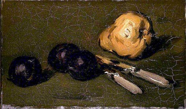 Editor: Here we have Jamie Wyeth's "Pot," created in 1969 using oil paint. It has a still-life quality to it; I’m struck by the contrast between the darkness and the intense bright color of the bird inside the pot. How would you interpret Wyeth’s composition here? Curator: Note how the artist deploys a relatively restricted palette, achieving textural contrast between the metallic pot and the feathered plumage. The artist presents us with a tension, not merely between light and dark tonalities, but between geometrical order, exemplified by the vessel's curves, and a more baroque sensibility as witnessed in the cascade of light reflecting off the bird. Consider too the positioning of the light source which appears to emanate not just from one location but diffuse throughout the space surrounding the titular "Pot." This evokes in the viewer a tension between illumination and obscurity and is in effect an epistemological gesture. Editor: So, the tension between these shapes, textures, and the distribution of light, speaks to a more philosophical exploration. Curator: Precisely. It prompts a kind of phenomenological engagement with what one may even be willing to term 'domesticity'. Editor: That’s an interesting point. Looking at it now, the dark background and confined space within the pot create a sense of confinement or perhaps unease. I had originally thought it was a simple still-life painting. Curator: Formalism demands a certain amount of rigor when dealing with signifiers like these. It's only with patience that these things yield a return for those willing to look closely. Editor: I definitely see this painting differently now. Thanks for illuminating that for me. Curator: It has been my distinct pleasure.