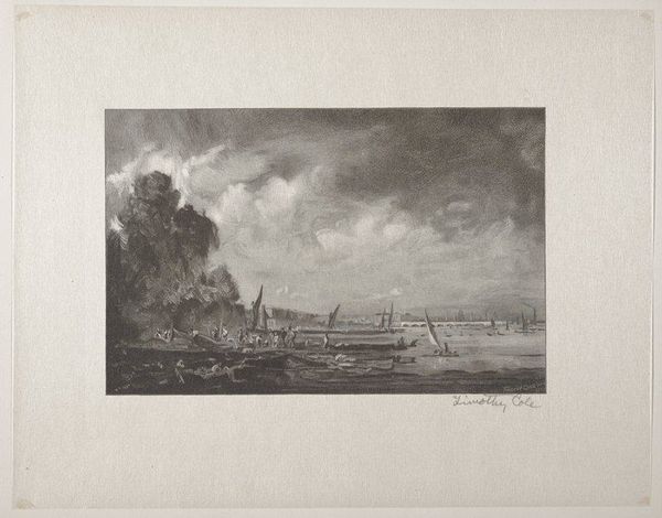 Curator: Here we have Pieter Idserts’ “Zeegezicht,” created sometime between 1708 and 1781. The artwork, rendered in graphite on paper, captures a vast seascape. Editor: My initial impression is the moodiness—the grey hues and the almost oppressive cloud cover evoke a sense of isolation. What can you tell us about the process and the materials, in terms of graphite and paper? Curator: The choice of graphite, a relatively accessible material at the time, suggests the artist perhaps wanted to capture the fleeting nature of light and atmosphere. Its monochrome palette removes distraction from what I see as Idserts’ commentary on the relationship between human endeavor and the awesome, almost sublime, indifference of the natural world. We’re at the height of Dutch maritime power; and the vastness renders these human activities tiny by comparison. Editor: I find the artist's choice of medium interesting. Graphite is a material with connections to mining and industrial production, it moves this away from ideas around ‘sublime nature’ and pushes our understanding towards the commodification of natural resources at this time. The presence of ships and even small boats underlines that human interaction with the sea is labor, resource management. Curator: Interesting points. I agree the presence of ships signifies industry and the exploitation of natural resources. Considering the period and the history of the Dutch East India Company, you see it as less a sublime rendering, and more about labor and perhaps exploitation of the environment. Editor: Precisely, even this quiet seascape evokes the global networks of trade and exploitation that defined the Dutch Golden Age. Look at those faint horizontal lines suggesting choppy waves—a reminder of the very real challenges and labor involved in traversing these waters. The seagulls, almost swallowed by cloud, reflect lives also connected to this maritime world. Curator: I now find myself reframing this image as a study of not just light and atmosphere, but as a reflection on maritime power and its reach. A document to understand a society as seen by this artwork! Editor: Exactly. Seeing the world through the lens of materials, labor, and the very real conditions of making, reveals narratives that would otherwise remain hidden. This simple drawing opens a fascinating space to investigate this period of history.
