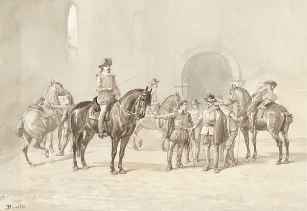Frederic Remington painted 'The Return of Gomez to Havana' using oil on canvas, a fine art material associated with the documentation of important historical events. Here, the monochromatic palette helps to create a subdued, almost journalistic feel. Brushstrokes are loose and expressive, focusing on capturing the moment rather than meticulous detail. The painting's power lies in its ability to evoke the atmosphere of the event: the textures of the crowd, the weight of the horses, and the somber mood, all rendered through the manipulation of paint. The quick, almost frenetic application speaks to the pressure Remington felt to capture this event for the American public, reflecting a broader culture eager to consume images of war and its aftermath. Although oil painting is considered to be within the realm of fine art, Remington’s practice straddles the line between reportage and artistic expression, capturing the cultural and political dynamics of the time. Ultimately, considering the materials and Remington's methods reveals that the painting's significance resides as much in its making as in its subject.