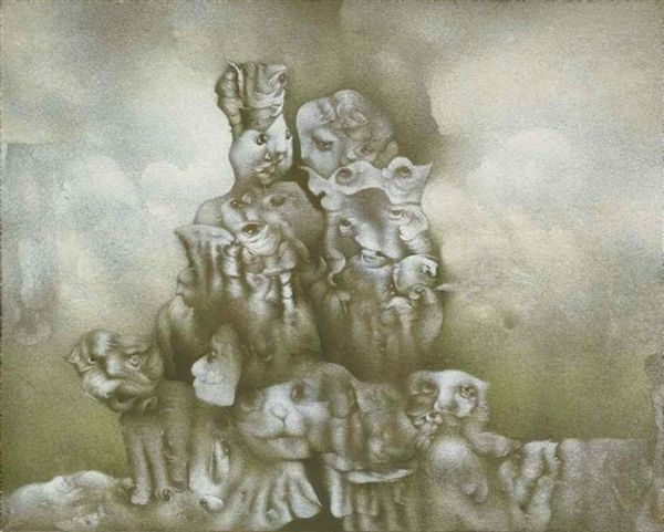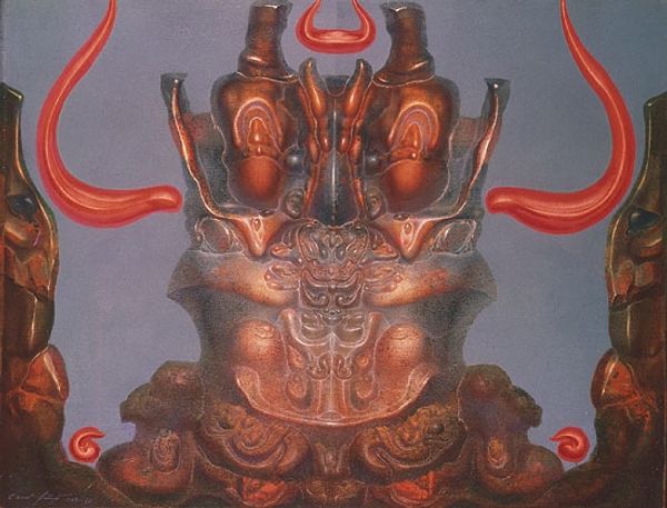 Ernst Fuchs created this artwork with the intent to challenge viewers to think about societal issues. Fuchs’s “Job and the Judgement of Paris” explores the traditional medium of painting, imbued with an unmistakable personal touch. The monochromatic painting’s smooth surface displays an airbrushed, photo-realistic quality. But Fuchs also drew on traditional, pre-industrial techniques, particularly the glazing methods of the Old Masters. This painstaking, time-intensive approach—layering translucent paints to create luminous effects—reveals a deep understanding of materials and their potential. Fuchs’s detailed application, combined with symbolic narratives, demands that the viewer slow down. It asks us to move beyond fleeting impressions and confront difficult themes. Here, traditional art materials and processes don't just create an image, they invite contemplation, urging us to question our values and assumptions. By understanding the materials, techniques, and social context of "Job and the Judgement of Paris", we can fully appreciate its depth and meaning.