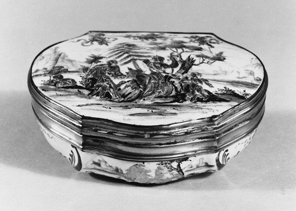 Curator: Here we have a decorative silver box created around 1668 by Isaac Le Febure. Editor: It's striking how lustrous the metal is, even in this photo. It appears weighty, substantial. I imagine its coolness to the touch. Curator: Indeed, it is a testament to the rising merchant classes in the late 17th century. Artisans like Le Febure catered to their desire for luxury goods and items showcasing wealth. Boxes like these held everything from spices to jewelry, affirming status. Editor: I’m captivated by the circular composition: the curved lid with its floral design, mirrored by the round base, all encased in a sleek cylinder. There is balance and a certain self-contained wholeness here. Curator: Look closely, and you'll see the engraved coat-of-arms on the side, likely commissioned by a noble family wanting to flaunt their lineage. The piece embodies that era’s rigid social structure where objects mirrored a family’s place. Editor: And there is a kind of dance going on at the upper frieze, or perimeter of the box, between these floral high relief chasing against that flat expanse. It’s a masterful manipulation of surface and depth. Curator: Silver’s preciousness allowed messages of social class to be literally hammered into being. Owning a silver object positioned one amongst the elite of Europe. Editor: In short, the formal harmony speaks volumes, hinting that we humans love neat boxes within boxes within boxes… Curator: Right—everything meticulously categorized and presented. I wonder, though, what impact mass-produced goods had in unraveling silver's cultural power as a tool for displaying prestige in later eras. Editor: Its aesthetic force makes me reflect on the inherent elegance in simplicity. Curator: And how deeply objects were entangled in displays of prestige!