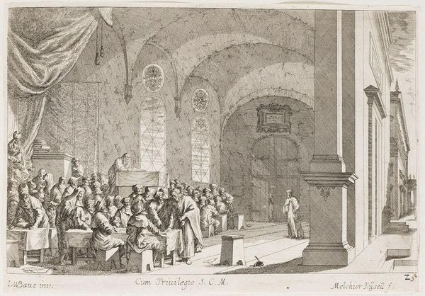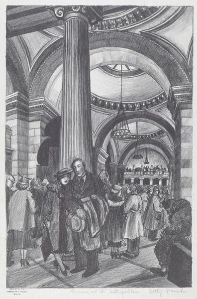 Editor: Here we have François Marius Granet's ink sketch, "Funeral," from the Harvard Art Museums. The rapid lines create a somber yet strangely ethereal mood. What strikes you about this piece? Curator: Well, the immediacy grabs me. Imagine Granet, quickly capturing the scene, the weight of the ceremony pressing down. The stark lines almost feel like a collective breath held. Doesn't it make you wonder who's in that coffin? Editor: It does. I initially just saw a crowd, but your point about the breath held makes me feel the absence more acutely. Curator: Exactly! Absence, presence... it's a dance, isn't it? Granet makes us feel both. Art is funny like that! Editor: Absolutely! Thanks, that's a good way to look at it.