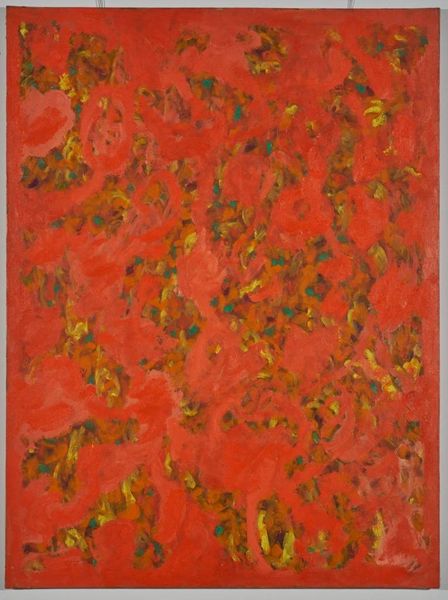Editor: Here we have Vilen Barsky’s *Untitled* from 1960, a vibrant swirl of oil paint, thick with impasto. I'm struck by its raw energy, almost chaotic. What do you see in this piece? Curator: Chaotic is one word for it! I feel something more akin to nature's frenetic dance. The organic shapes and frenzied strokes – it's almost a garden in the throes of some silent, powerful emotion. Or maybe I'm just projecting my longing for a sunny day onto it! Tell me, do you think it resembles something in nature? Editor: I can see the organic quality, especially the layering of greens and purples – maybe like looking into a dense forest canopy? I hadn't really considered it that way initially, but I like that perspective. Curator: Exactly! It also falls squarely within the Abstract Expressionist movement. They were all about pure expression, weren't they? And sometimes, that expression just erupts like this – a visual explosion of feeling and intuition. Think about the socio-political context of the time… a need for unbridled emotion. Editor: It does feel incredibly raw. So, less about representing something, and more about just feeling it, then putting it on canvas? Curator: Precisely. It’s not trying to depict reality; it *is* the reality of the artist’s internal landscape. Look at that heavy impasto – you can almost feel the artist’s hand, can’t you? Almost like they sculpted the emotions. It asks for interpretation not recognition. Editor: Seeing it that way gives me a whole new appreciation. I was stuck on trying to *find* something, but now I understand it's about *feeling* something. Curator: Yes. Art sometimes works like a mirror – reflecting back not what’s *there*, but what’s *within* us. A little chaos, a little garden, maybe even a bit of ourselves.