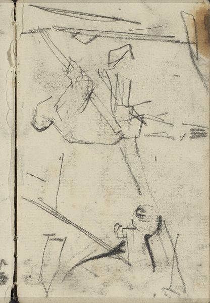 George Hendrik Breitner made this pencil drawing, titled 'Ploeg,' on paper. The artist has used a minimal approach to rendering a dockyard scene. It’s more of a sketch, really, a preparation for something else, perhaps a painting. The quick, light strokes of the pencil capture the industrial architecture of the dock, focusing on the geometric shapes of the buildings and cranes. The texture of the paper itself is part of the image. Breitner's engagement with such everyday scenes reflects a shift in artistic interests towards modern, urban life. We see none of the labor here, but of course the scene only exists because of it. The stark lines and the industrial subject hint at the social context of the time, a period marked by industrial growth, and the changing landscape of cities like Amsterdam. By focusing on these subjects, artists like Breitner expanded the definition of what art could be.