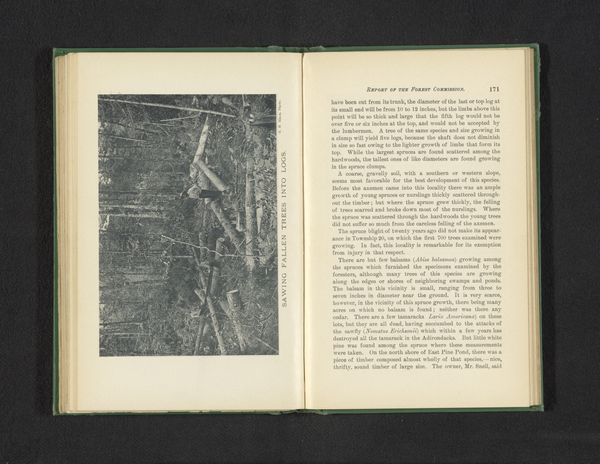 Curator: The object before us is a bound volume, likely dating from around 1886-1887, containing, among other texts, an aerial photograph titled "Luchtfoto van de buurt rond het Panthéon, Parijs"—an aerial view of the neighborhood around the Panthéon in Paris. Editor: It has a certain ghostly quality. All the little blocks that must be buildings are like husks viewed from above. And the page is so sepia-toned that the image looks like a dream or memory of a past era. Curator: Observe how the photograph, contained within this aged paper, presents a unique perspective, a novel way of seeing the city's architectural layout. This wasn’t possible before advancements in both photography and, presumably, aerial apparatus like balloons. We are positioned in the realm of semiotics of perspective. Editor: Right, consider the material production here: someone physically had to be in the air, in a balloon maybe, using early photographic techniques. The paper, likely handmade, bears witness to the labor involved, from producing the medium to developing the image. Think of the photographer and the production team—what labor dynamics were at play? Curator: We shouldn't lose sight of the deliberate compositional choices as well. Note how the lines converge, directing our gaze to specific focal points and revealing structural hierarchies in Parisian urbanism of the time. The Pantheon dominates, acting as a symbolic anchor in the urban tapestry. Editor: Symbolism exists materially, though. The photographic print is a reproducible object. So the work, in the context of printing and circulating such an image, suggests changing relationships with land, ownership, and knowledge. How does the proliferation of such images influence the real-world layout of the city? Curator: Fair enough, though my view focuses on how it operates pictorially; as a system of marks implying forms and the relationship among the forms to create an image which itself points to broader historical ideas about art's possibilities. Editor: Well, looking at the texture of this old paper and at this fascinating, faint record of Paris in print, reminds us of all the people it took to capture and preserve this unique historical perspective, and it helps us grasp both the abstract and concrete elements of their labor.