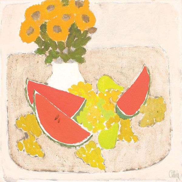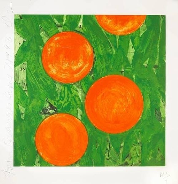 Donald Sultan, born in 1951, created "Apples and Oranges", which offers a contemporary take on the still life genre. This piece is a visual study of color, form, and composition. Sultan, working in a period marked by shifts in artistic styles, deliberately chose subjects from everyday life and elevated them through his unique approach. His use of industrial materials contrasted sharply with the traditional techniques of still life painting. Sultan once said, “I wanted to make something monumental out of daily life.” The oranges and apples might seem ordinary, but they act as vehicles for exploring contrasts—between natural and artificial, representation and abstraction. The textures, colors, and arrangements create a tension that invites viewers to contemplate the simplicity and complexity of existence. Through this artwork, Sultan challenges conventional expectations, urging us to find beauty in the mundane and reconsider our perceptions of the world around us.