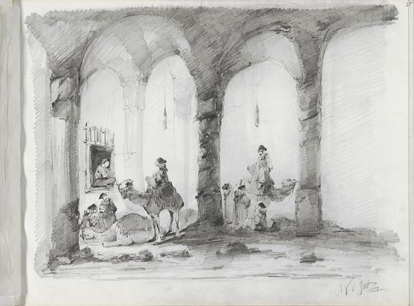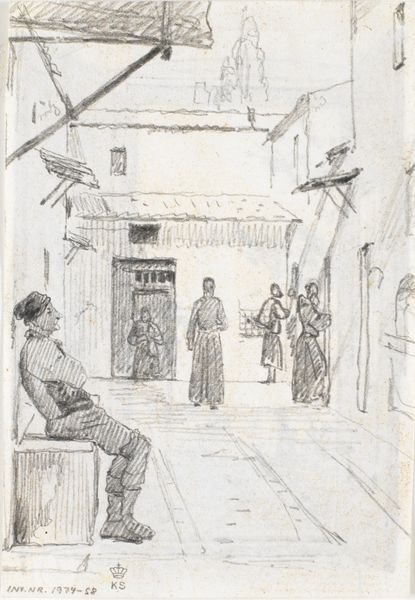 Editor: Here we have "Orientalere ved et Parti Skak uden for et tyrkisk kaffehus og Barberstue," a watercolor, ink, and pencil drawing by Martinus Rørbye, dating back to 1835 or 1836. It evokes a tranquil, almost dreamlike vision of daily life. I’m immediately drawn to how it seems to romanticize its subject. How do you interpret its depiction of the “Orient”? Curator: That's a key word: "romanticize." Rørbye’s work, like much Orientalist art, participates in a power dynamic. He’s presenting a view of a culture filtered through a European lens, particularly the exoticism that was popular with the bourgeois during the 19th century. How do you see that exoticism playing out visually? Editor: I see it in the architecture and the traditional clothing. They definitely create an image distinct from what someone in Denmark at the time would experience. The chess game almost feels staged, like a picturesque tableau. Curator: Precisely. This wasn’t just documentation; it was constructed imagery. The public role of this type of painting becomes really important. These works shaped, and often solidified, perceptions of “the other” for European audiences. Do you think it mattered that it was displayed at art exhibitions and potentially acquired by collectors? Editor: Absolutely. That’s how those ideas get circulated and legitimized. It makes me wonder what the artist's motivations were. Curator: Rørbye was likely catering to the prevailing tastes and interests of his patrons. He participated in, and benefited from, this production of exoticism. Recognizing that is crucial to understanding the art. Editor: So it's not just about what’s in the picture, but who is viewing it and why. I never thought about it that way before! Thanks for sharing! Curator: Exactly! And considering who commissions, collects, and curates such works continues to be essential today. Thanks for these interesting questions!