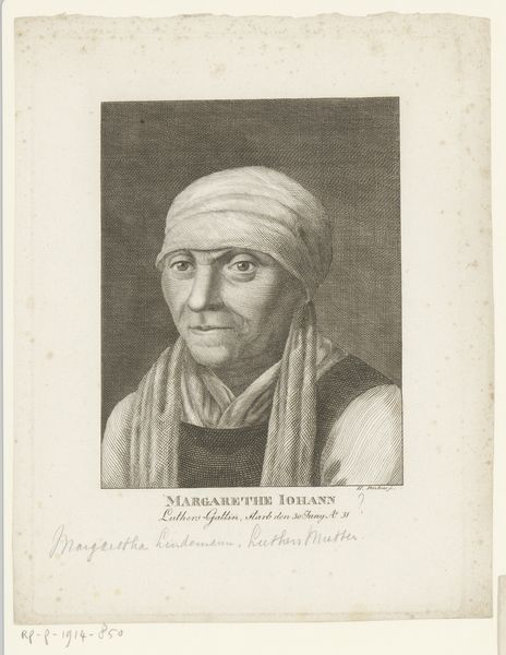Curator: Here we have Francesco Bartolozzi’s “Portrait of a Peasant Woman,” made in the late 1700s. It's a delicate engraving, rendered with incredible detail on paper. Editor: It’s strikingly direct. There's an almost uncomfortable level of intimacy achieved through those subtle gradations of tone in the drawing. Her expression seems guarded, yet present. Curator: Yes, the gaze certainly holds power. As a portrait of a peasant, consider the symbols Bartolozzi chose— the simple, but immaculate clothing. There is a subtle idealization in how she is portrayed. Her posture erect, almost dignified. The large brimmed hat and tightly wrapped headscarf, could signify regional or group identity at this time. Editor: Absolutely. I immediately think of the power dynamics inherent in representation. Who gets to depict whom, and what choices do they make? How does this romanticized image contribute or conflict with lived experiences of women laborers in that era? Look at that plain dress, the minimal adornment save for one rosette: this is far removed from the lives of nobility. Is the rosette itself symbolic of a specific allegiance or social grouping? Curator: Very possibly, the rosette may represent something as specific as allegiance during times of sociopolitical instability, as in Revolutionary France or even Britain. And while seemingly simple, the lines around the face are meticulously etched and convey more than just realism, and almost a virtue. Editor: Right, and thinking about audience: consider that an elite, likely male, gaze was dictating this representation. While celebrating the dignity of labor, this image remains safely within established class boundaries. She's the subject of study, not an agent of her own story. And in “His Majesty’s Collection," the label seems to reinforce this objectification. Curator: But let’s remember the context. Bartolozzi's engravings served the purpose of dissemination; this may well be the version many had access to versus an original painting only seen by the elite. He popularized images and ideas, which holds its own power. Editor: That's a vital point; its presence in a collection, however, still speaks to power and ownership in very specific ways. So in this subtle print we're seeing artistic intention, class tensions, and the circulation of imagery – all contained within those fine, elegant lines. Curator: It’s like peering into a layered historical moment. I think studying this print encourages us to ask bigger questions about the individuals portrayed and our perception of them as a collective group. Editor: Agreed, by engaging critically with historical representation like this, we hopefully can be sensitive in the retelling of other women's stories in the present.