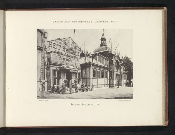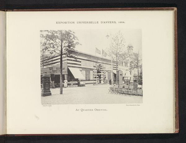 Editor: This is a print of a photograph by Th. Lantin called "Exterieur van de Oriëntaalse sectie van de wereldtentoonstelling te Antwerpen," taken in 1894. It depicts a cityscape with buildings in what looks like an "Oriental" style. The print itself feels very staged, almost like a movie set. What's your take on this image? Curator: Indeed, it's quite striking how this image embodies the cultural dynamics of world expositions. It reveals more about European fantasies of the Orient than about the actual cultures being represented. How do you think the architecture in this photograph contributes to the "Oriental" theme? Editor: The buildings have these dome-like roofs and decorative facades which, to my eye, suggests a kind of generic "Eastern" aesthetic, distinct from Western architectural styles I am more familiar with. Do you see this as a respectful portrayal, or is something else at play? Curator: That’s a crucial question. In the context of the late 19th century, these exhibitions were often instruments of colonial power. The "Oriental section," presented a curated, often distorted, view of the East to a Western audience. It reinforced the idea of Western superiority by framing other cultures as exotic spectacles. Consider the photographer's choice of framing - what does it include, and what does it omit? Editor: Now that you point it out, it feels like it is reinforcing a specific viewpoint. I hadn't thought about the power dynamics involved in these representations. Curator: Exactly. It's important to remember that even seemingly neutral photographs like this were often laden with ideological baggage. They shaped public perceptions and helped justify imperial ambitions. Editor: I see now how this photograph is more than just a cityscape; it's a historical artifact reflecting complex social and political forces. It gives me a lot to think about when considering how images can be used to convey and reinforce certain ideologies. Curator: Precisely. Analyzing this image through its historical context helps us understand the role of art and photography in shaping public opinion and furthering specific agendas.